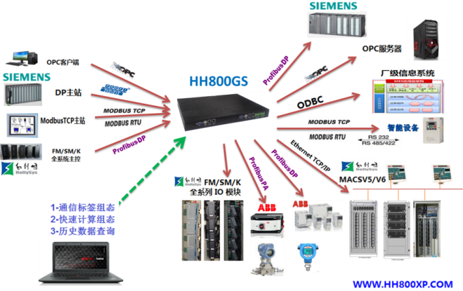 HH800GS 產(chǎn)品內(nèi)置了OPC 客戶端和服務(wù)器端軟件,已經(jīng)在出廠前配置完畢(包括 DCOM 配置、權(quán)限設(shè)置等等),現(xiàn)場(chǎng)可以直接使用。同時(shí),還可以保護(hù) OPC 數(shù)據(jù)通訊的信息安全。