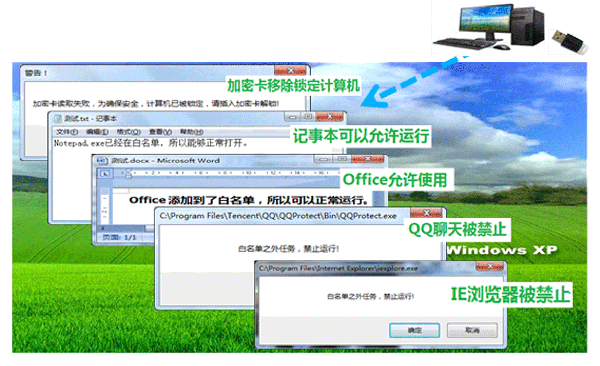 6、按出加密卡,系統(tǒng)將被銷定,避免人員破壞.